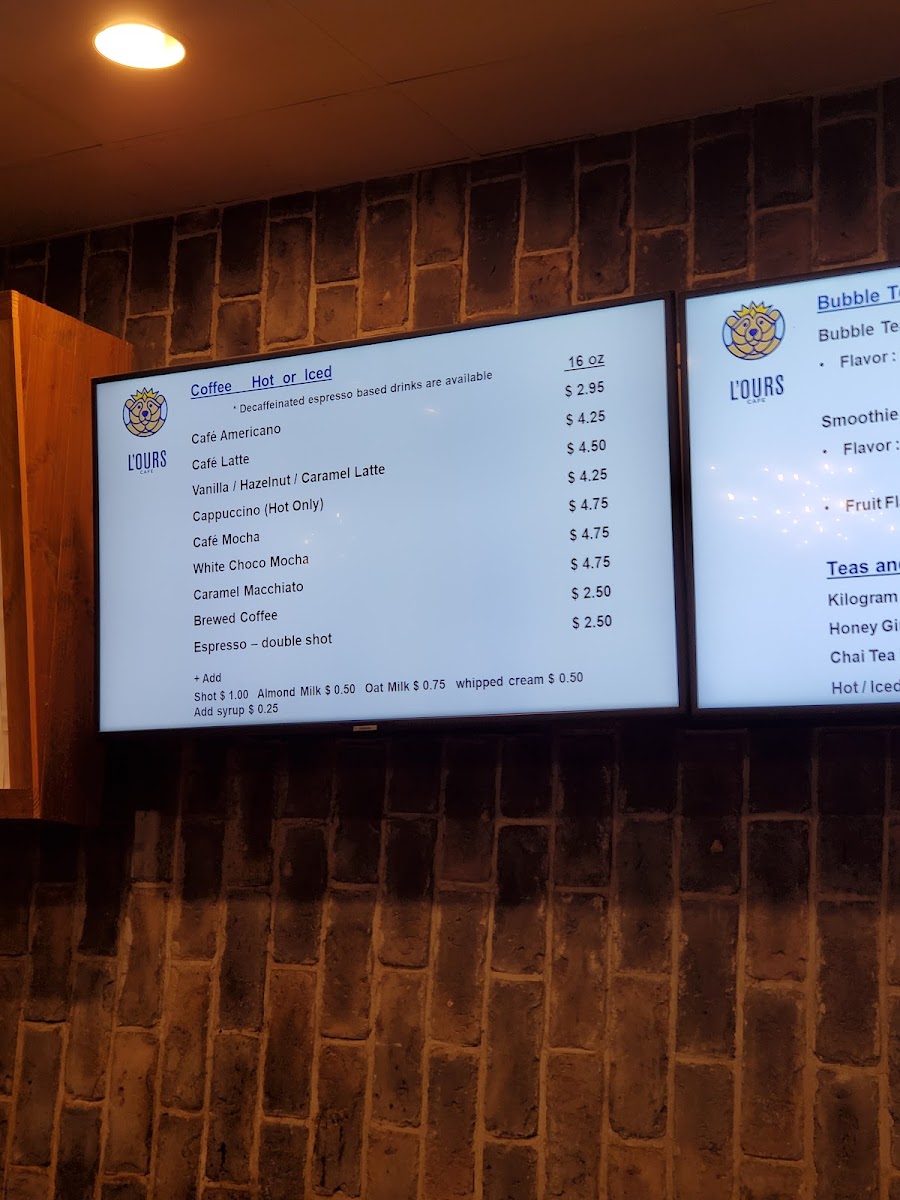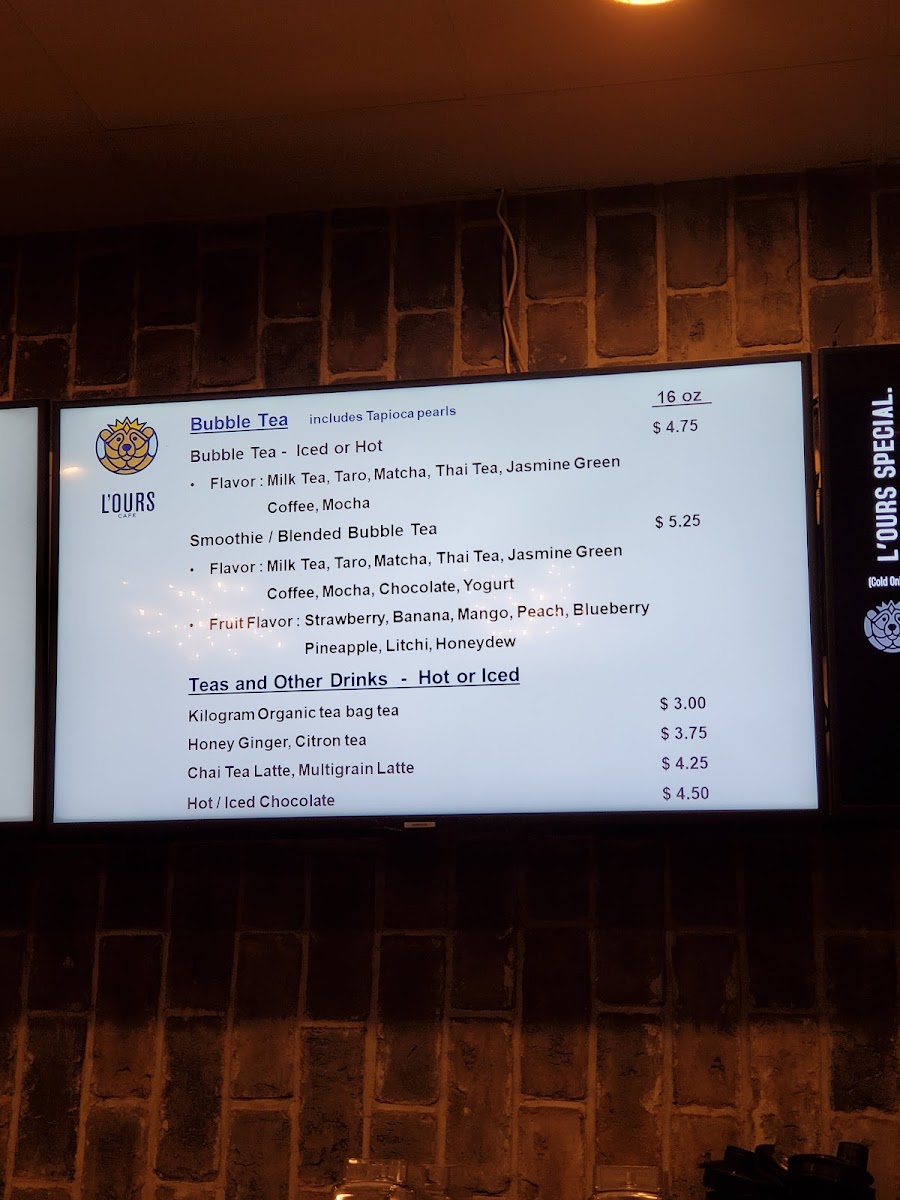 One of the highlights of the menu includes bubble tea, with popular options like jasmine green and mocha smoothie flavors receiving rave reviews from customers. Additionally, L'ours offers a range of baked goods, including delicious traditional Korean treats, making it a unique culinary destination.